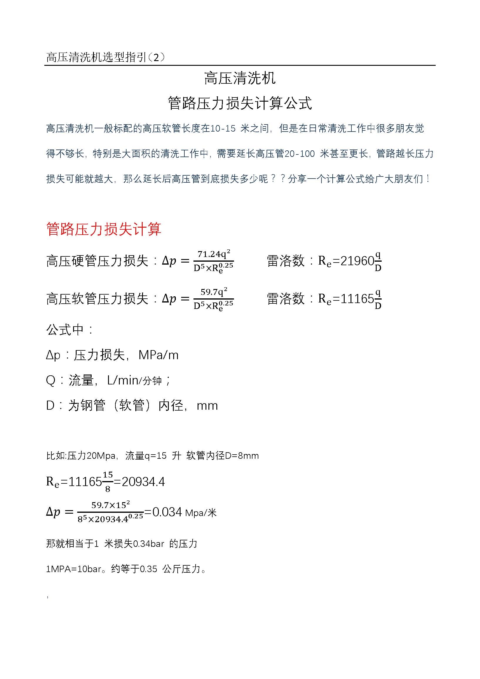我們在使用高壓水清洗機進(jìn)行射流清洗作業(yè)時,大部分人都忽視了壓力的損失,但是高壓水清洗機在實際作業(yè)中,高壓水流經(jīng)高壓膠管、連接接頭與旋轉(zhuǎn)體等不同阻力的截面均會造成壓力損失,而導(dǎo)致壓力損失的關(guān)鍵因素是流量系數(shù)而不是所使用的壓力。液體流經(jīng)高壓膠管的直徑與長度的流量系數(shù)決定最終所損失的壓力。