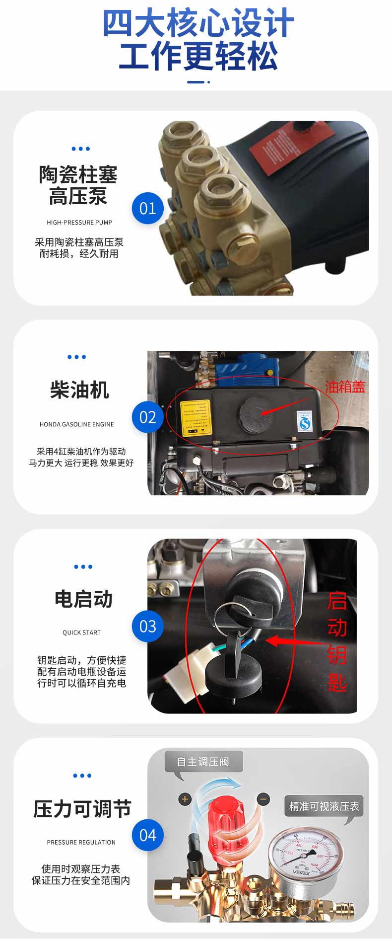 RJHT-500型,采用意大利進(jìn)口高壓泵,壓力調(diào)節(jié)和安全控制閥,熱敏閥等多種安全防護(hù)裝置,具有安全性高,使用操作穩(wěn)定等優(yōu)點(diǎn)。